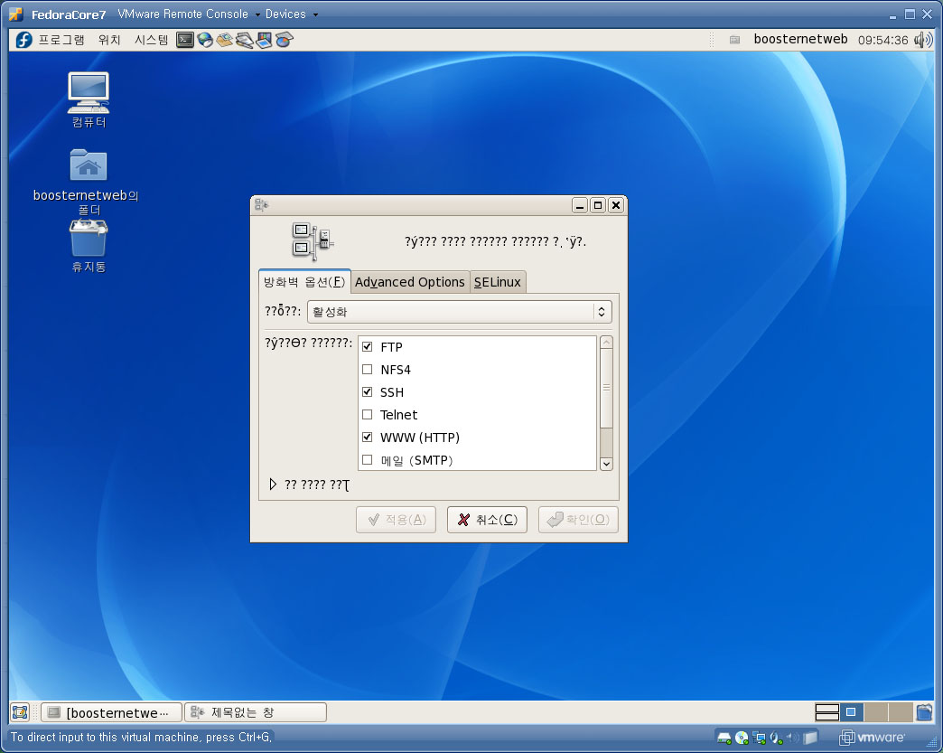 첨부된 것 처럼 페도라 코어 7을 Vmware로 설치하여 사용중입니다.