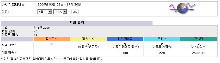 첨부한 파일처럼 접속현황에 대한 정보가 모두 0으로 표시되네요